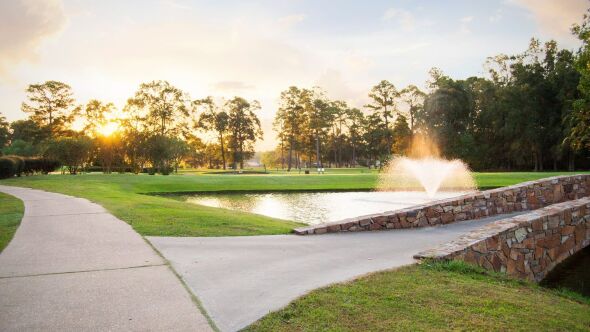 A view from a fairway at Walden on Lake Houston Golf Country Club Walden on Lake Houston GCC. Enjoy free WiFi onsite parking and fenced yards. Walden on Lake Houston CChas golf tennis racquetball fitness facilities and swimming.